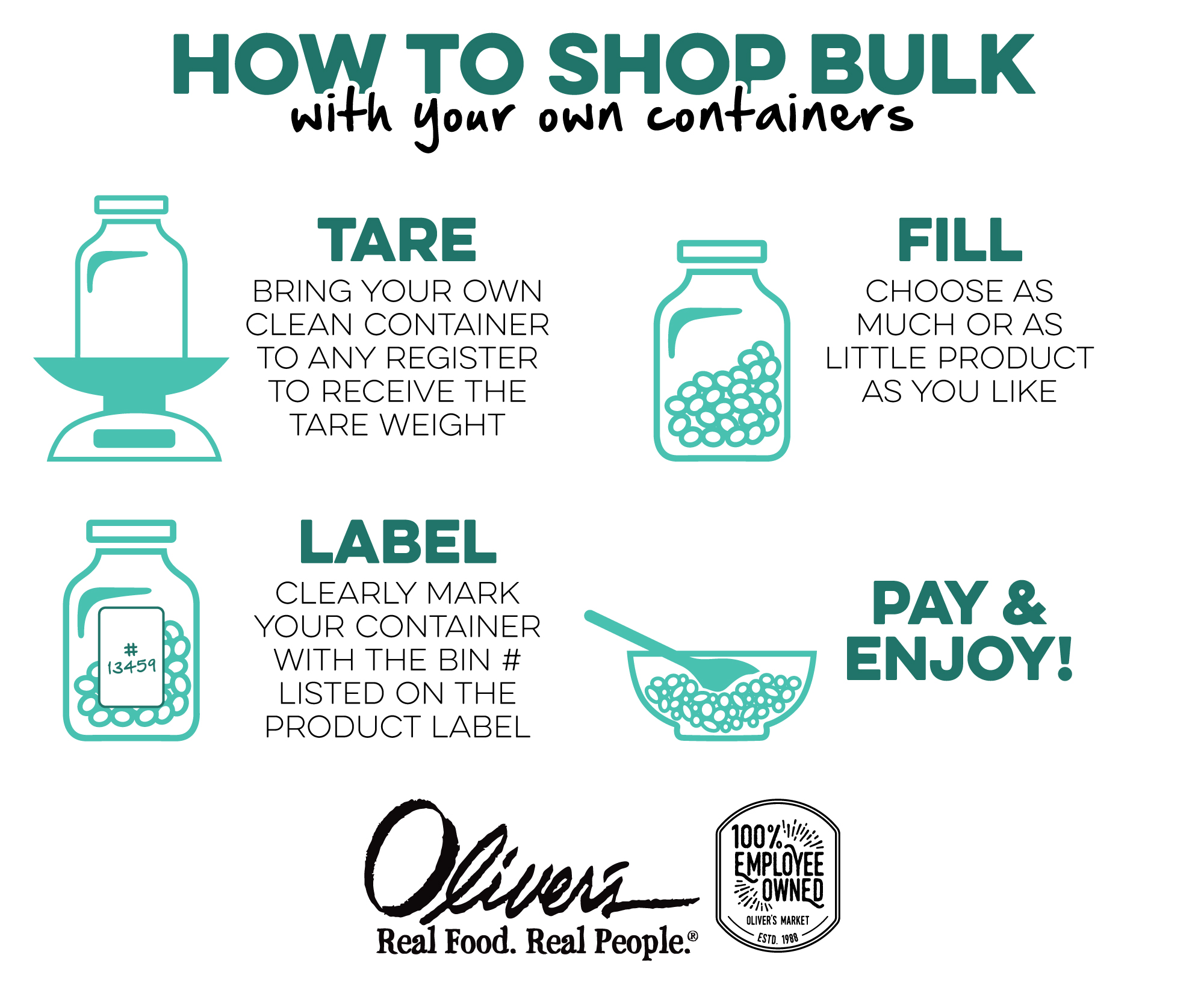 Buying food in bulk can be intimidating to those who haven’t tried it before, but once you start, you’ll be hooked! Whether it’s the freshness or the savings that get you or the knowledge that you’re doing your part to help the environment, there’s no end to the satisfaction that can from buying in bulk. And there’s never been a better time to start – come into Oliver’s this week only for 30% off everything in our bulk food section, you’ll wonder why you didn’t start ‘bulking up’ sooner.