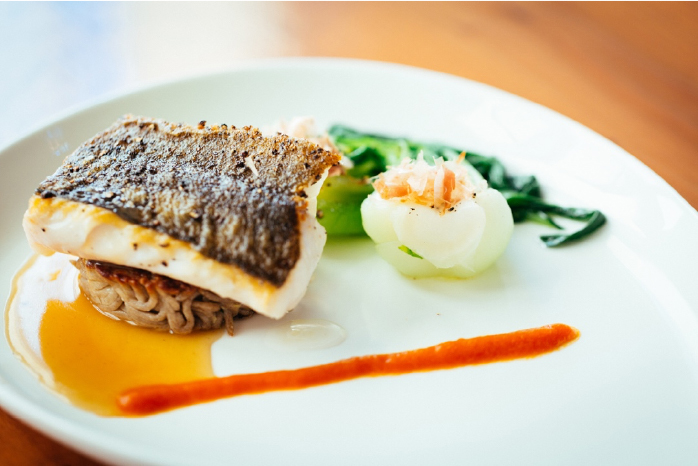 -Place the fish on top the Soba noodles and finish with a pinch of the Bonito on the Bok Choy.