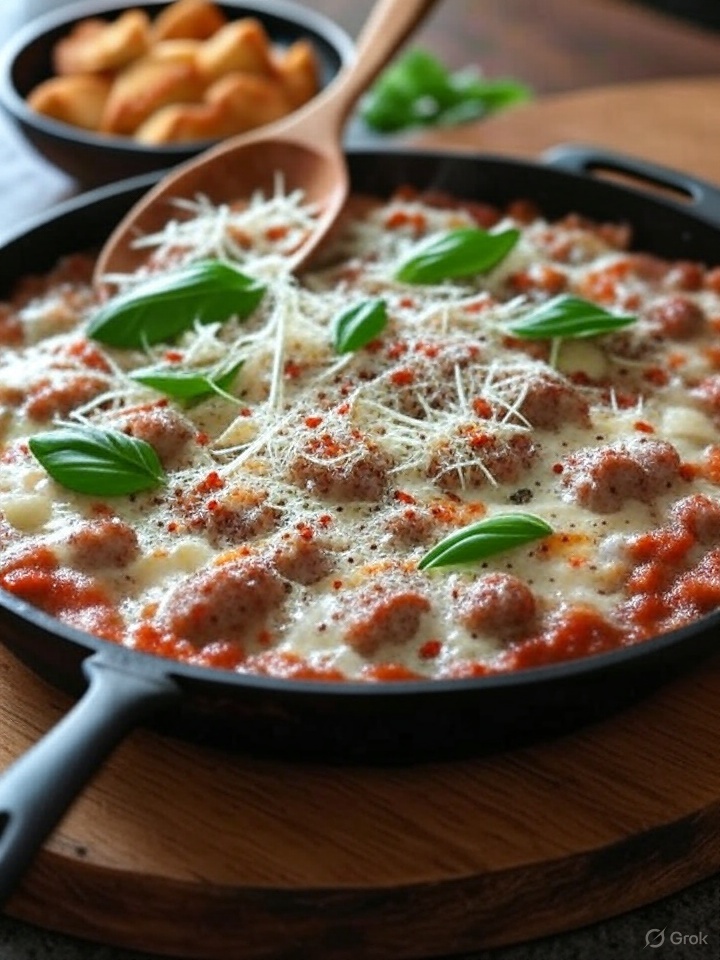 In a medium oven-safe skillet over medium heat, cook the Italian sausage, breaking it apart with a spoon until browned and fully cooked.